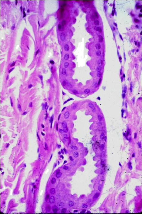 Apocrine secretion typically has a bulging apex, resulting in some cytoplasmic loss during secretion