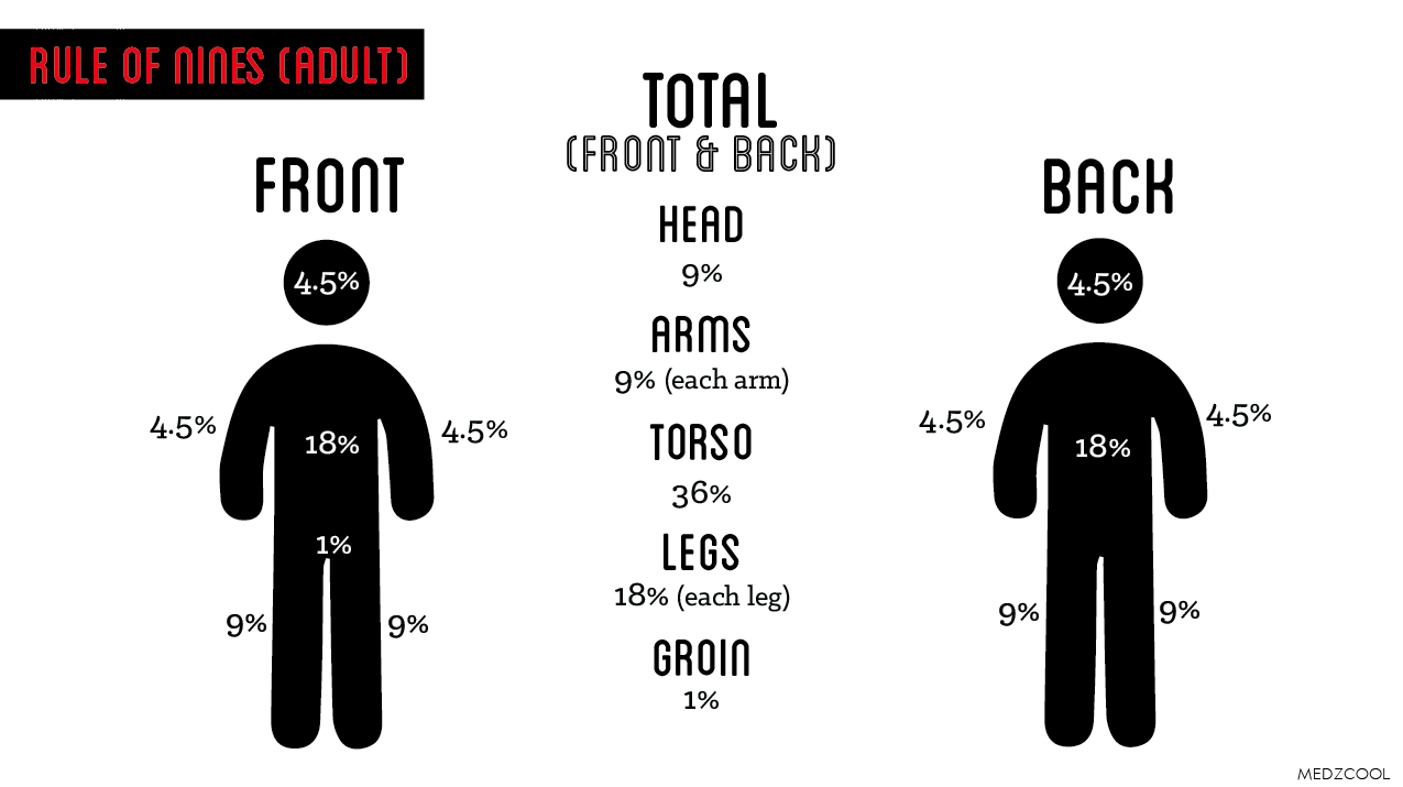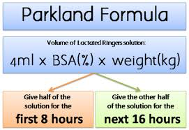 Parkland formula in determining the amount of fluid replacement a burned patient will need in the first 8 hours and the next 16 hours