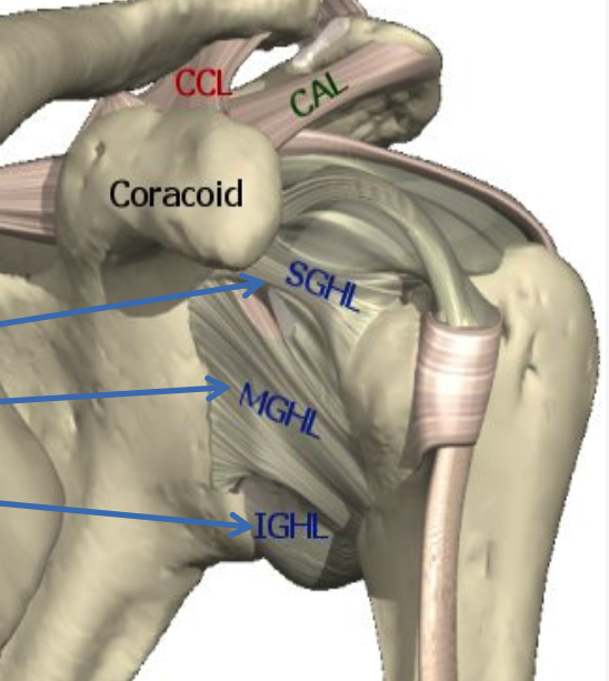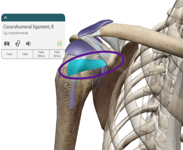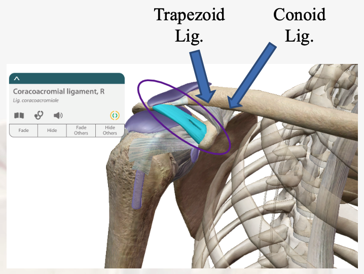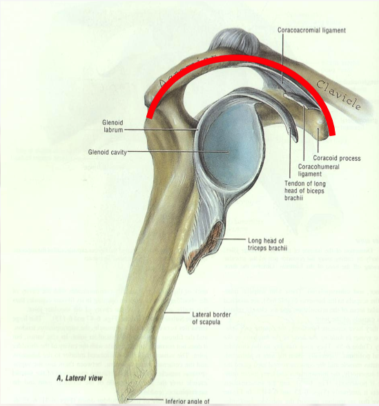 runs from lateral aspect of coracoid process to greater tubercle of the humerus