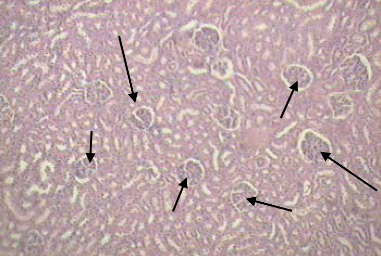 What is indicated by the arrows in this H&E section of the kidney?