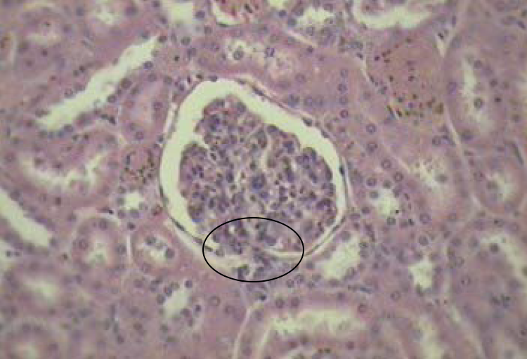 What is indicated by the circle on this H&E section of the kidney?