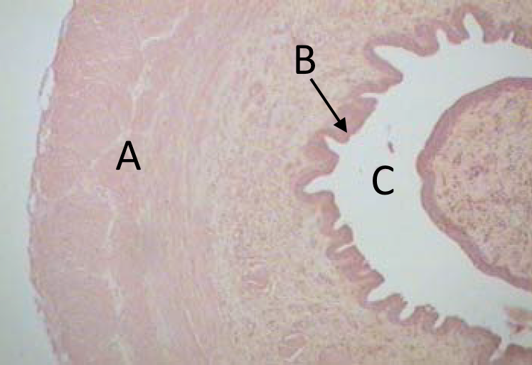 Identify ‘B’ in this H&E section of a ureter.