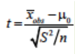 Which equation is used to determine the tobs of one population mean, if the population variance is unknown?