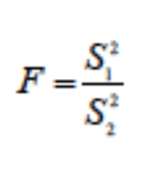 Which equation is used to determine the Fobs of a ratio of two population variances?