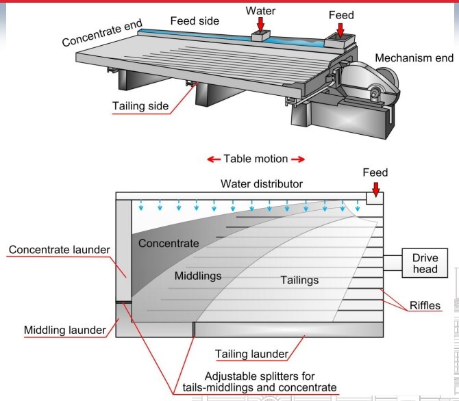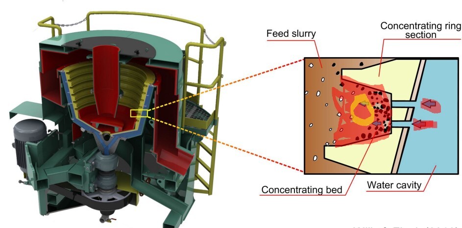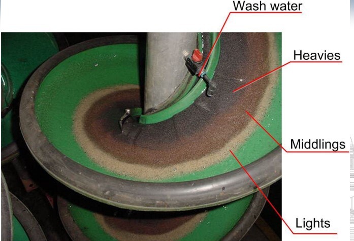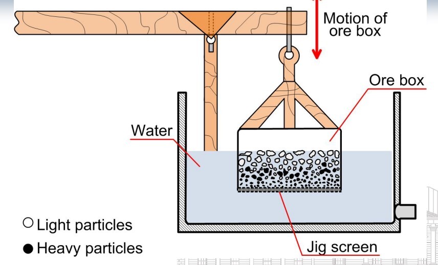 Water is pulsed through the bed Heavy particles settle, passing through a grid/screen