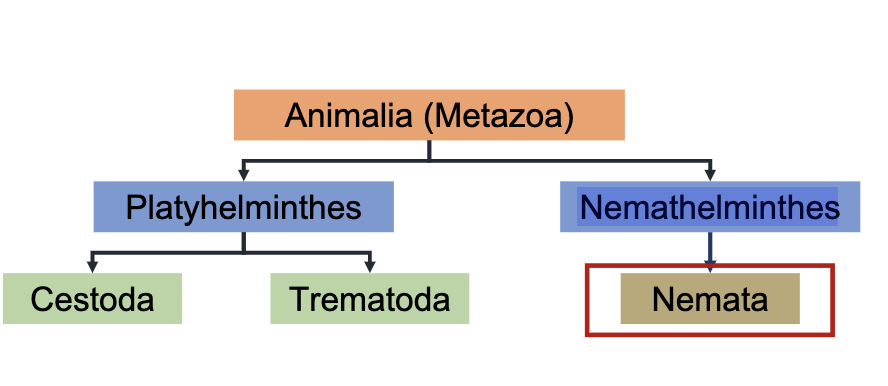 What is the kingdom and phylum of nemata?