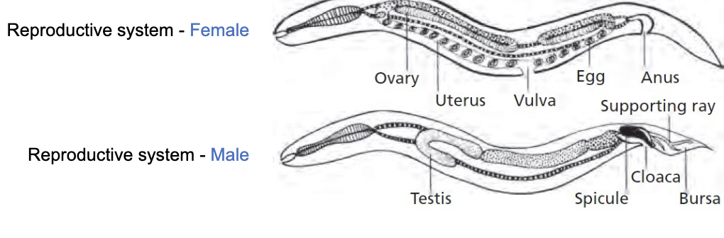 Female vs male reproductive system in nematodes