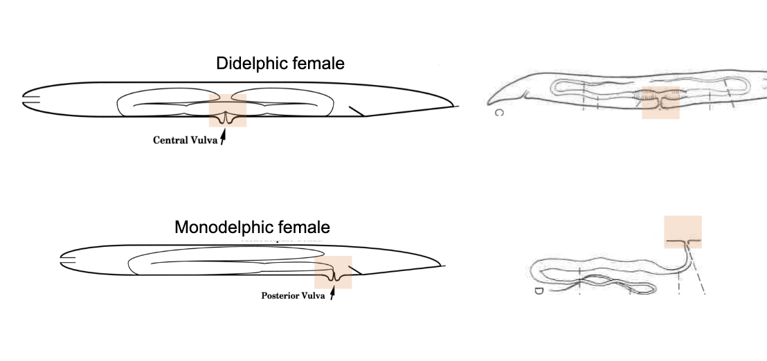 Didelphic female vs monodelphic female nematode