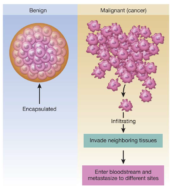 Can be malignant (cancerous) or benign –> Depends on whether the tumor is encapsulated
