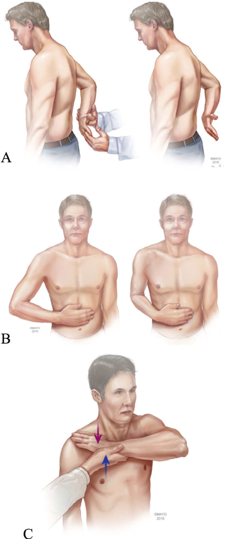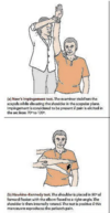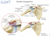 indicative of impingement of rotator cuff tendon/bursa against the coracoacromial arch: most commonly supraspinatous