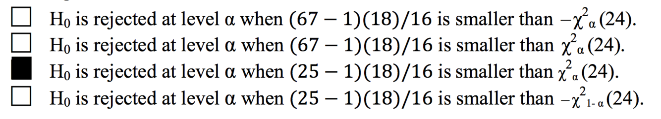 True or False: In a chi-square test of independence for a 4 x 3 contingency table, H0 is rejected at α = 0.05 when the observed value of the test statistic is greater than χ20.95(5).