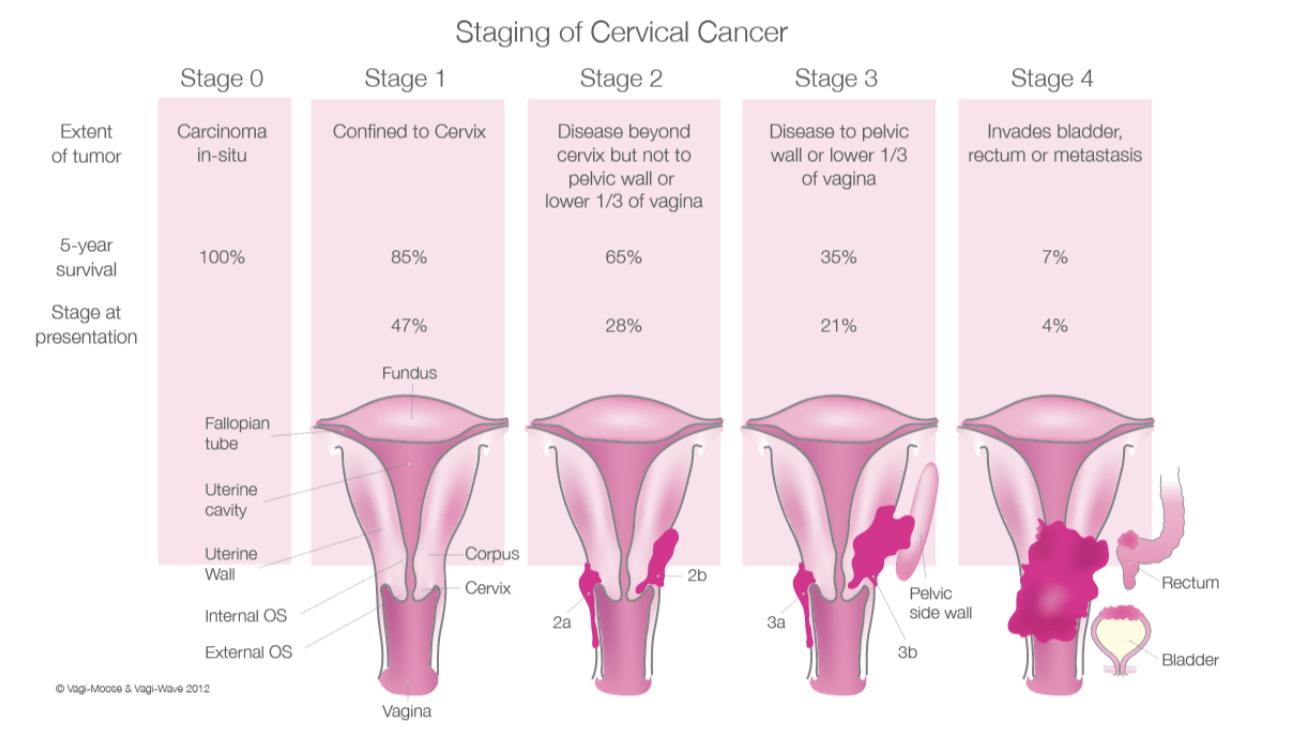 Describe the different stages of cervical cancer [4]