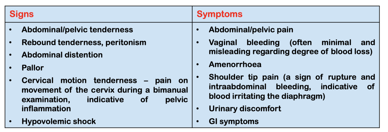 Describe the clinical features of ectopic pregnancies [+]