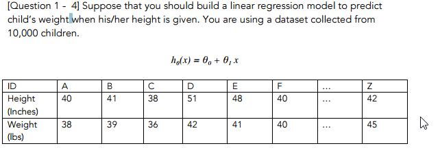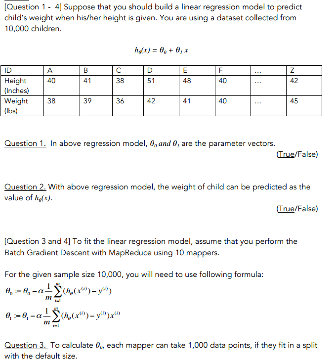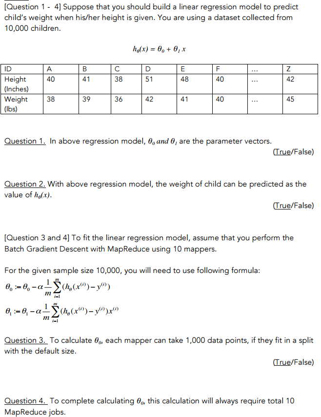 T/F with above regression model, the weight of the child can be predicted as the value of h_theta (x)
