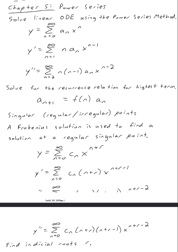 y = sum from n=0 to infinity c_n x^{n+r}