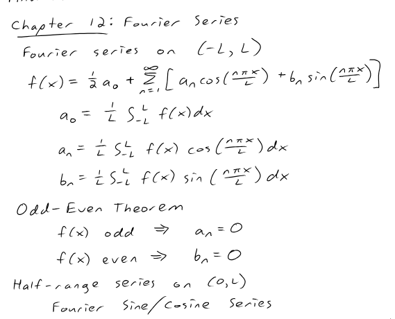 f(x) = (1/2) a_0 + sum from n=1 to infinity [a_n cos(n pi x / L) + b_n sin(n pi x / L)]