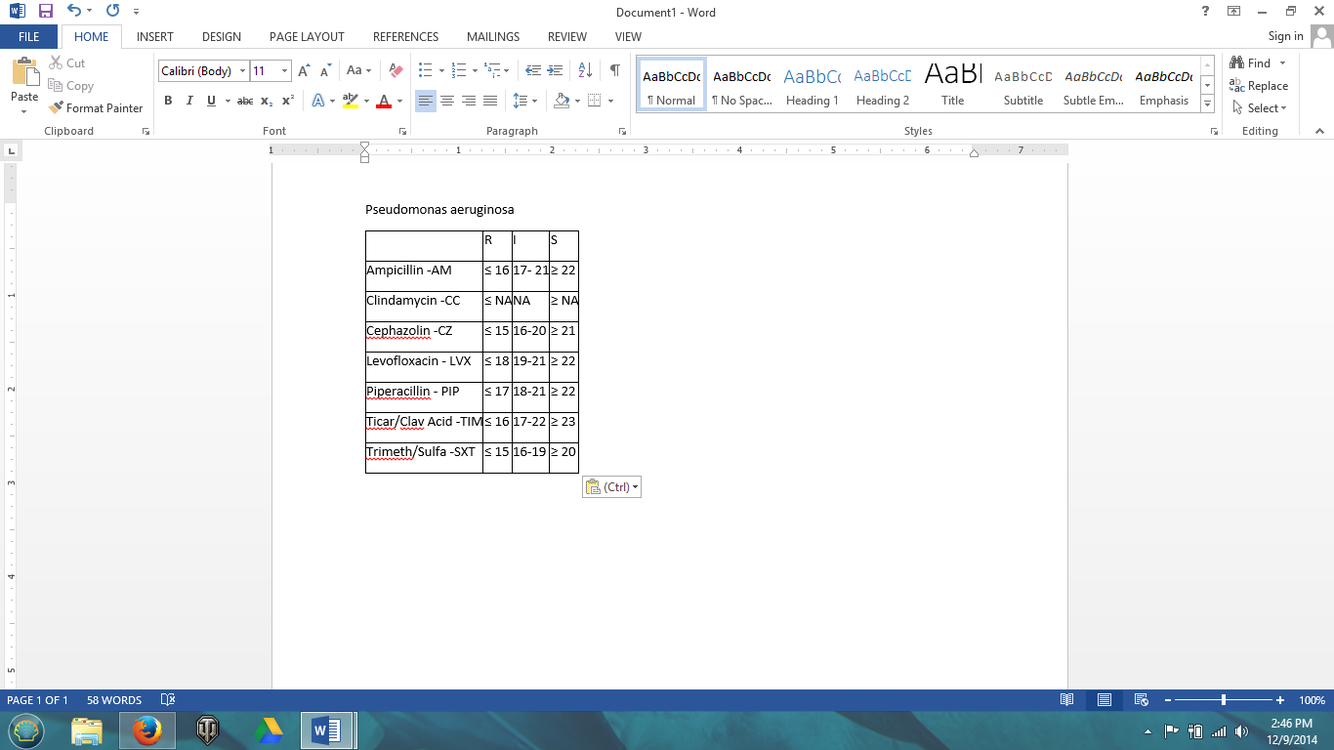 Specimens for bacterial culture were submitted from a burn patient. The culture grew a non lactose fermenting gram negative rod identified as P. aeruginosa. Disk diffusion testing was performed with the following results. Ampicillin=16mm Cefazolin=16mm Levofloxacin=23mm Ticarcillin/Clavulanic Acid=18mm Use these CLSI interpretations to determine which category is indicated. LVX is _____ AM is _____ CZ is _____ TIM is _____