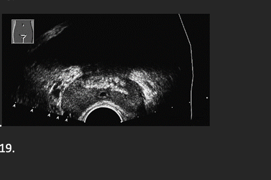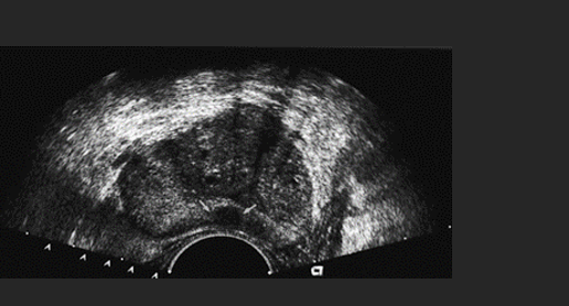 A patient presents with a history of hematuria and elevated prostate specific antigen(PSA). The neoplasm identified by the arrows is located in which region of the prostate gland? –