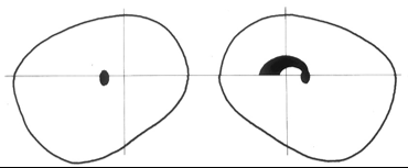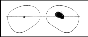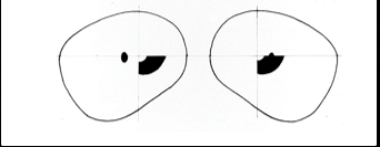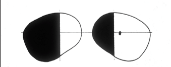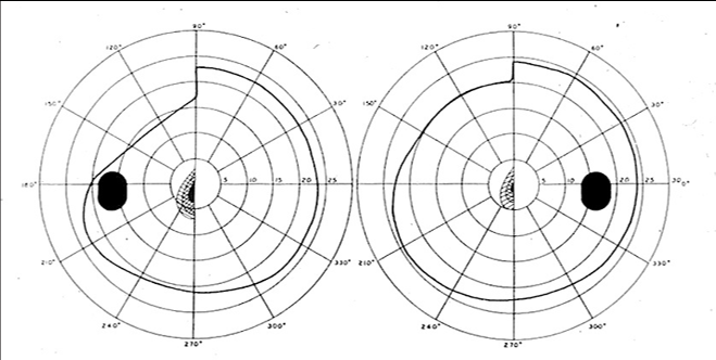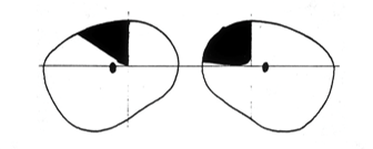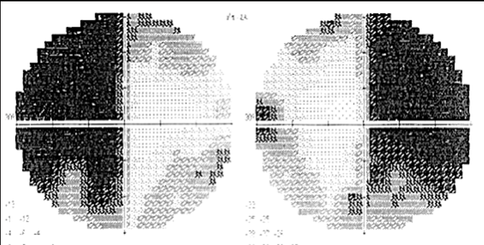 lesion to the optic tract leading to a field defect in both eyes. a nasal on right and temporal on left