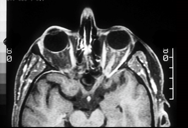 demyelinating plaque that is affecting the optic tract