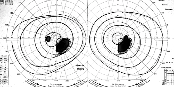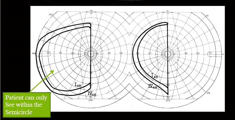 this shows damage to meyer’s loop in temporal lobe usually caused by a tumor or stroke