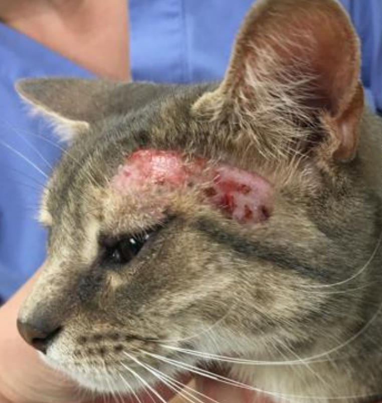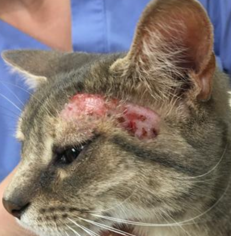 EG: nodules, plaques, masses that can affect the head, oral cavity, chin, and paw/paw pad. erosion/ulceration may be present, pruritis is variable