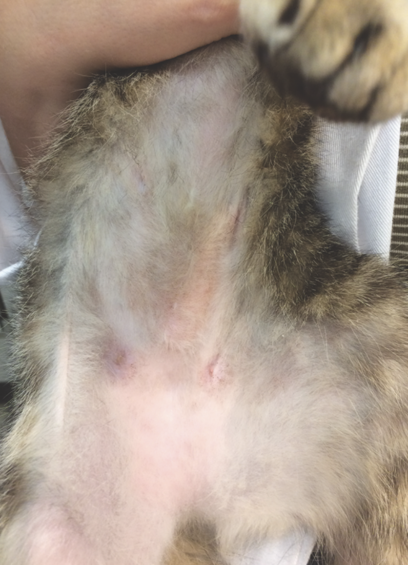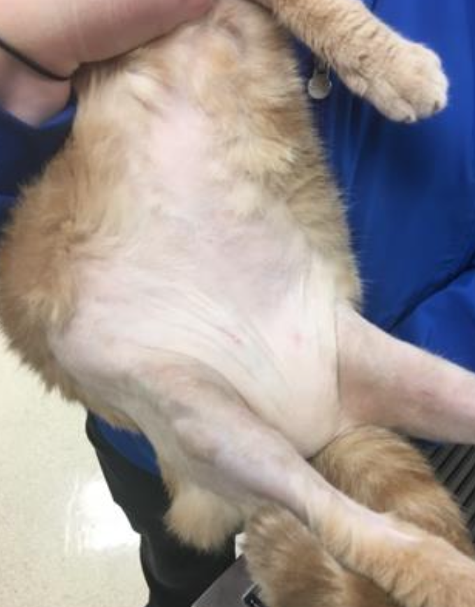 self-inflicted alopecia/hypotrichosis (SIAH) in a cat with feline atopic skin syndrome (FASS)