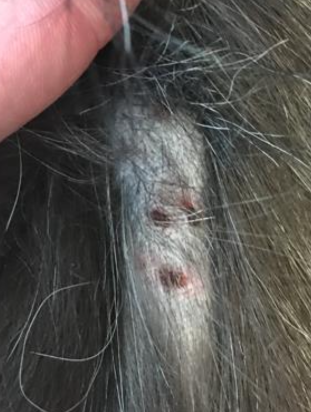 excoriations, erosions, alopecia, erythema (can be quite dramatic)