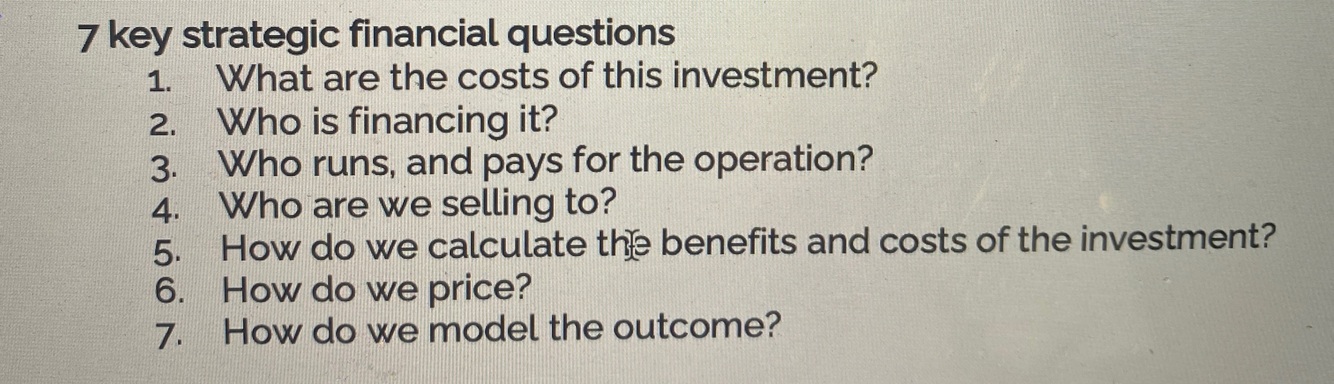 What are 7 key strategic financial questions?