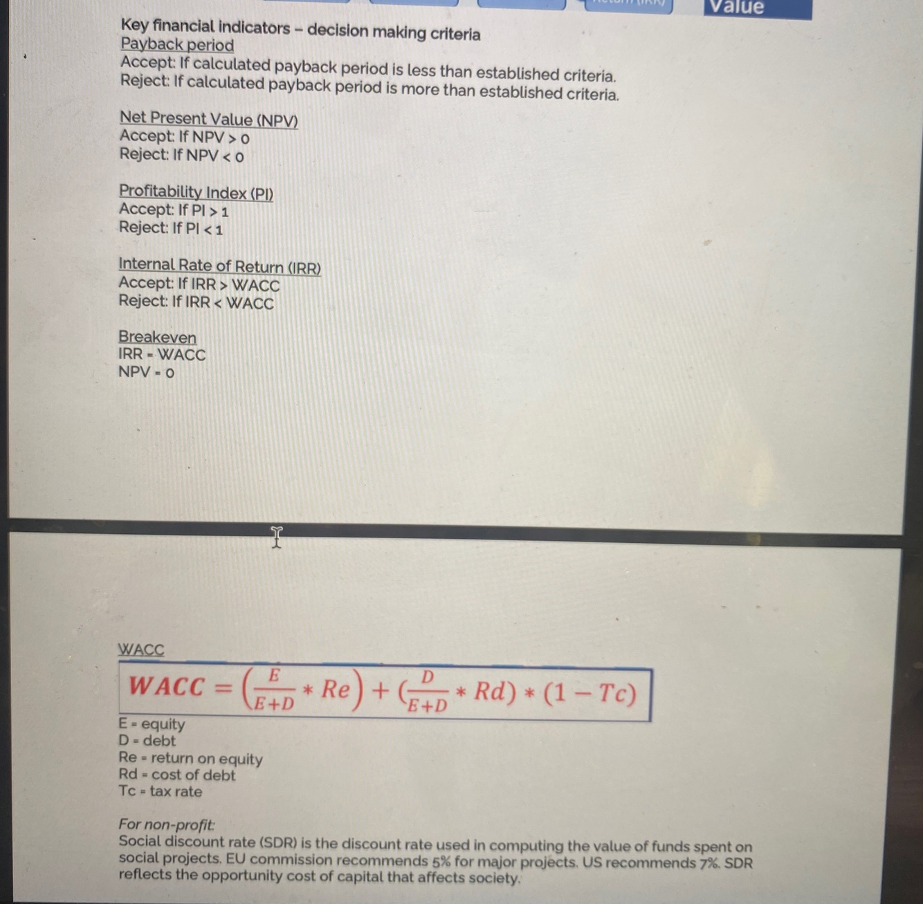 What are key financial indicators?