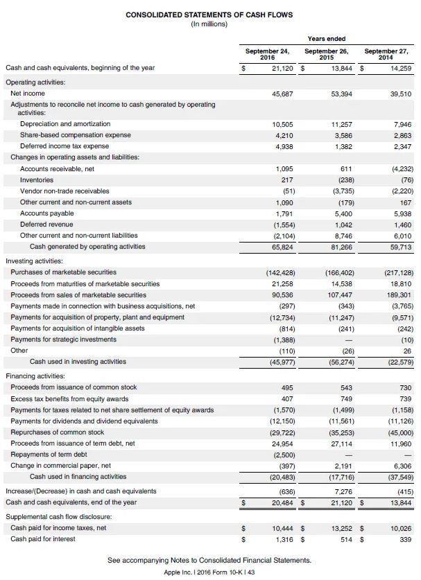 Shows all cash inflows that a company receives from its ongoing operations and external investment sources, aswell as cash outflows when they occur