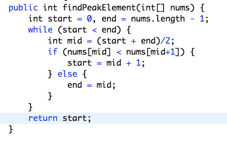 For example, in array [1, 2, 3, 1], 3 is a peak element and your function should return the index number 2.