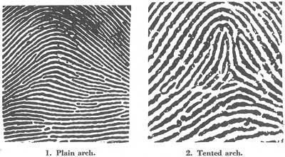 They are the rarest pattern (approx. 6% of people have it) and their ridges cross smoothly and raise towards the centre. Their sub-classes are plain/simple arch and tented arch.