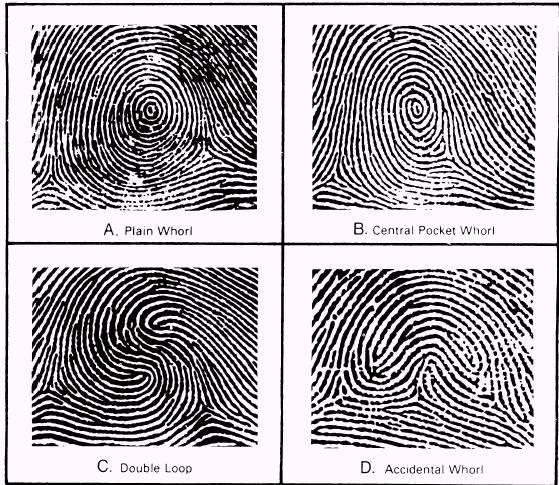 Approximatly 34% of people have them and the ridges form circles, whirlpools or spiral shapes. Their sub-classes are simple/plain whorl, central pocket whorl, and accidental whorl.