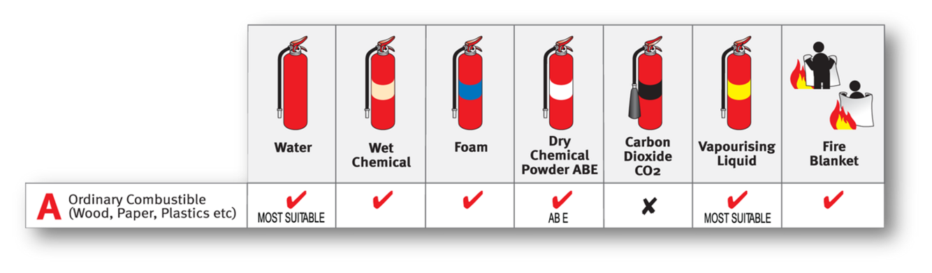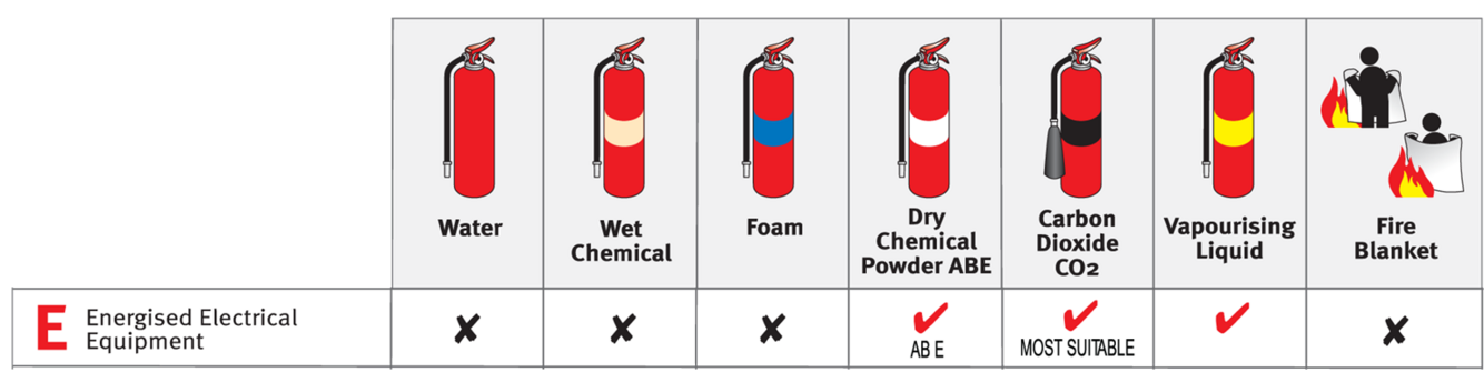 Class E fires – electrical equipment: once the electrical item is removed, the fire changes class