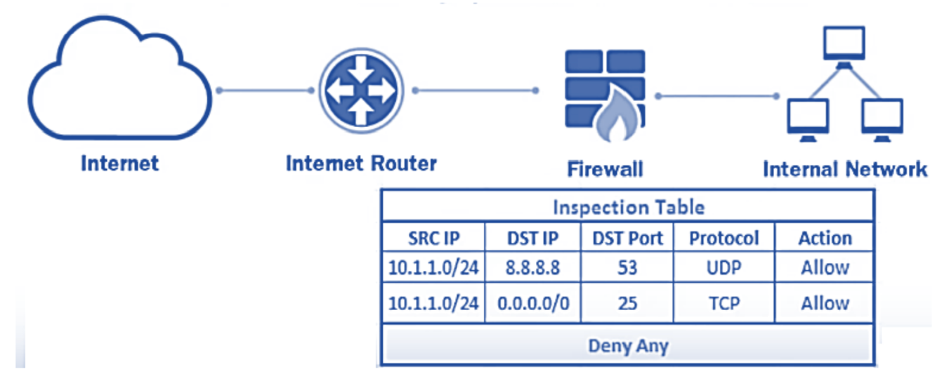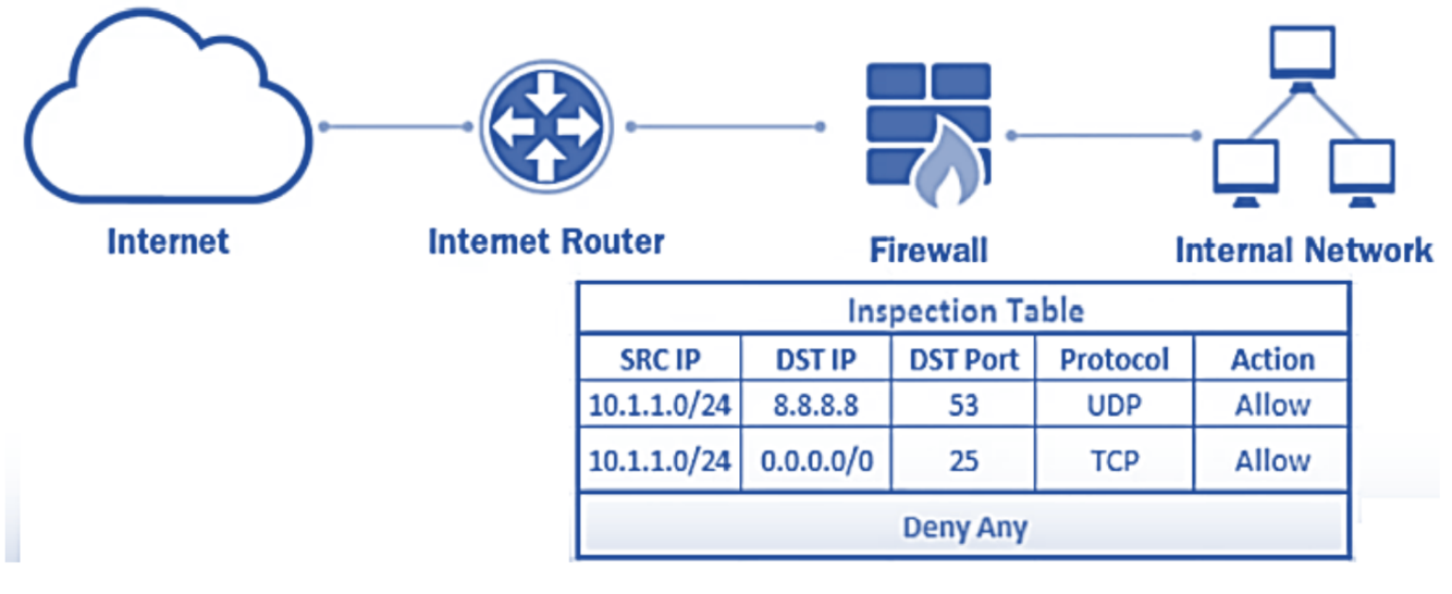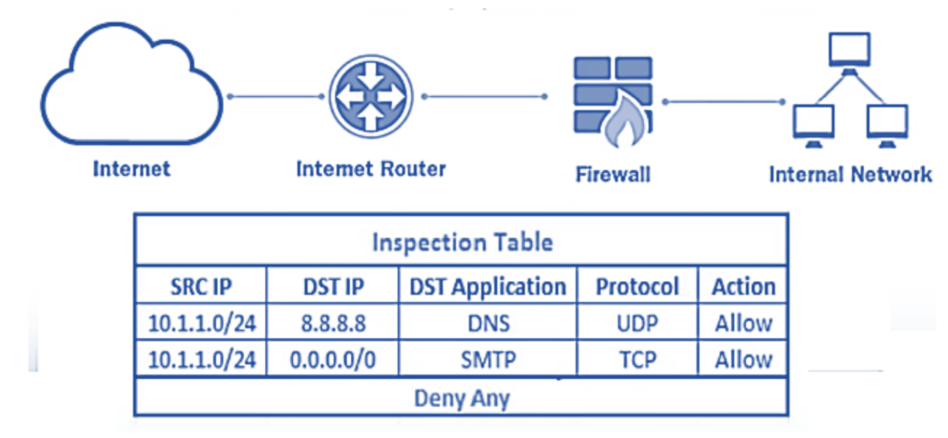 o It evaluates packet contents statically and does not keep track of connection state.