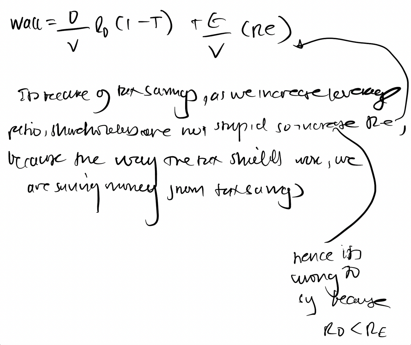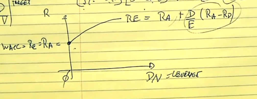 It is the same as return on equity and WACC because shareholders only face risk of assets but when debt increases there is financial risk to shareholders in addition to risk on the assets, show shareholders ask for a higher Re, hence wacc doesn’t equal ra