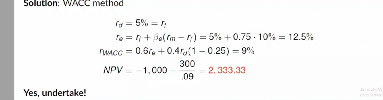 Then calculate the discount rate, using wacc.