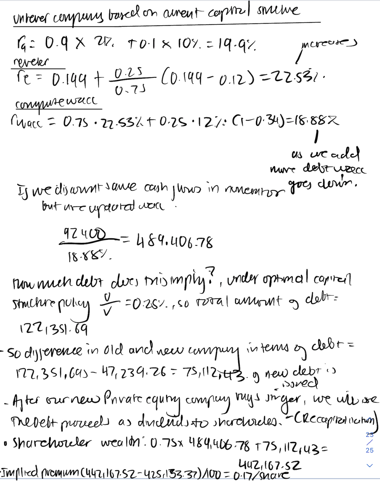 Now lets solve this ( hint calculate incremental debt and assume this debt issued, is used to pay shareholders a dividend)