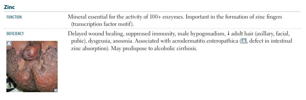 Delayed wound healing, immunodeficiency, loss of hair growth, anosmia