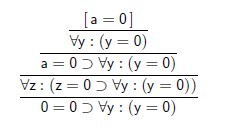 The rules used are the following (top to bottom): ∀-Intro, ⊃-Intro, ∀-Intro, and ∀-Elim.