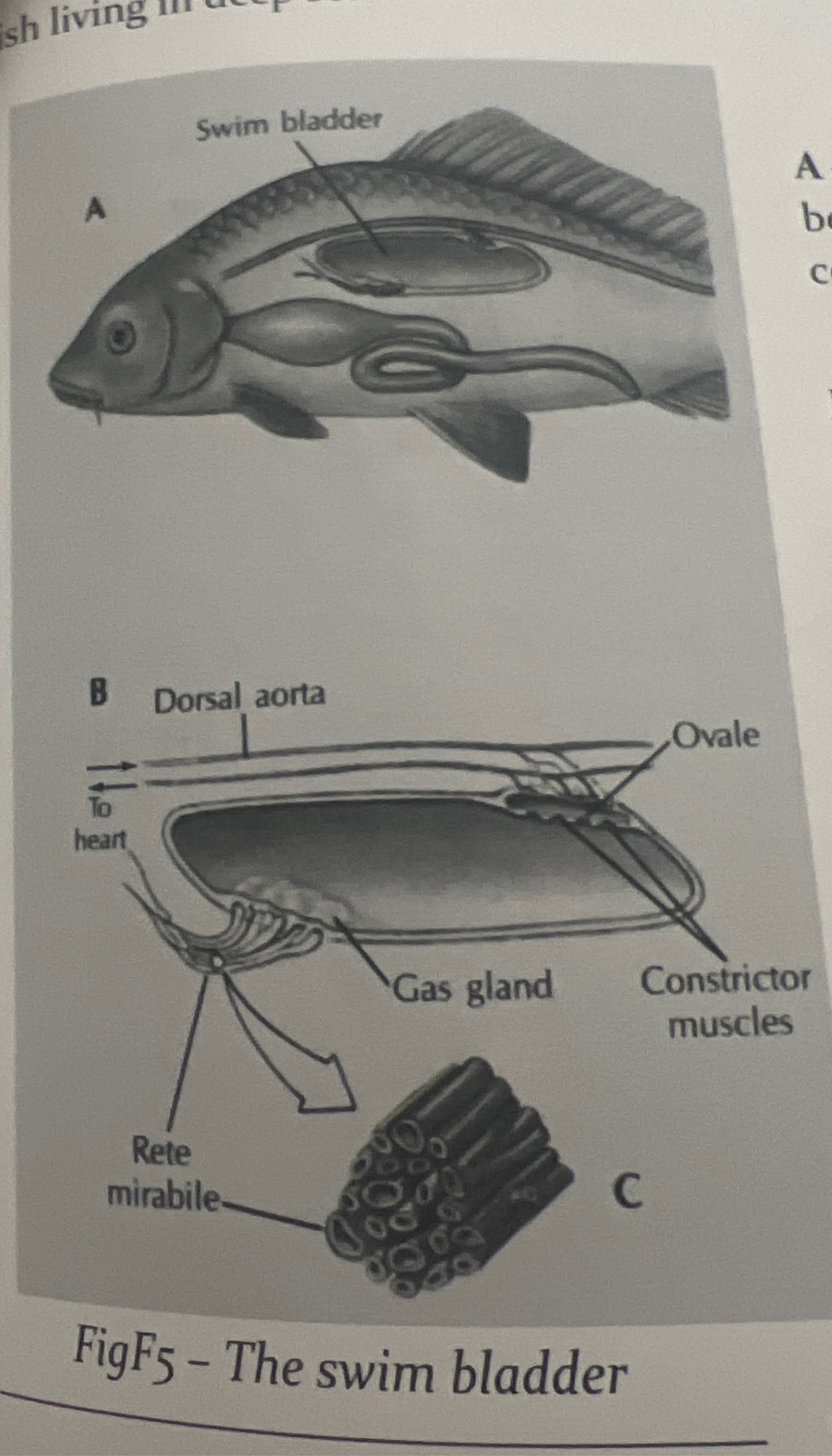 more specialised fish secrete gas into swim bladder via blood make use of a highly specialised gas gland that secretes gas into the bladder and resorptive area(ovale) that is able to move gas from the bladder