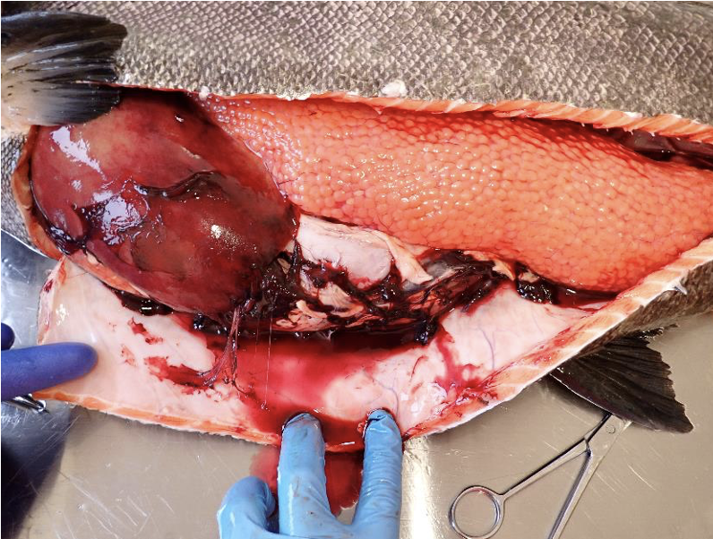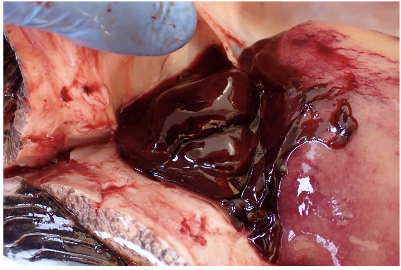 Ecchymotic haemorrhage in liver (bacterial - Moritella viscosa)