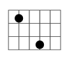 Pattern 2 has roots on the fifth and third strings, two frets apart