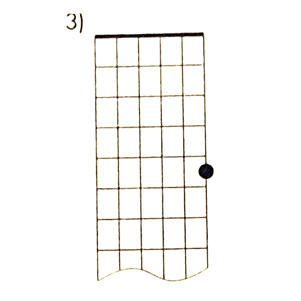 Pattern 3 has roots on the third, first and sixth strings, three frets apart