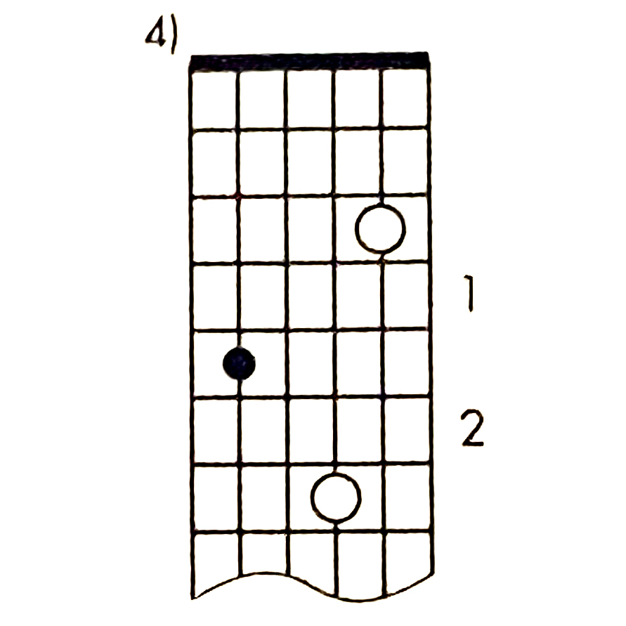 Pattern 4 has roots on the first, sixth and fourth strings, two frets apart