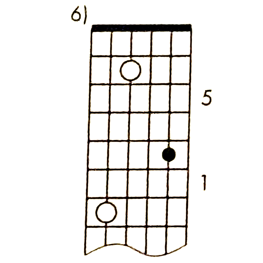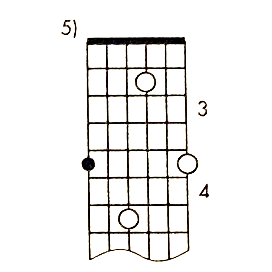 Pattern 5 has roots on the fourth and second strings, three frets apart