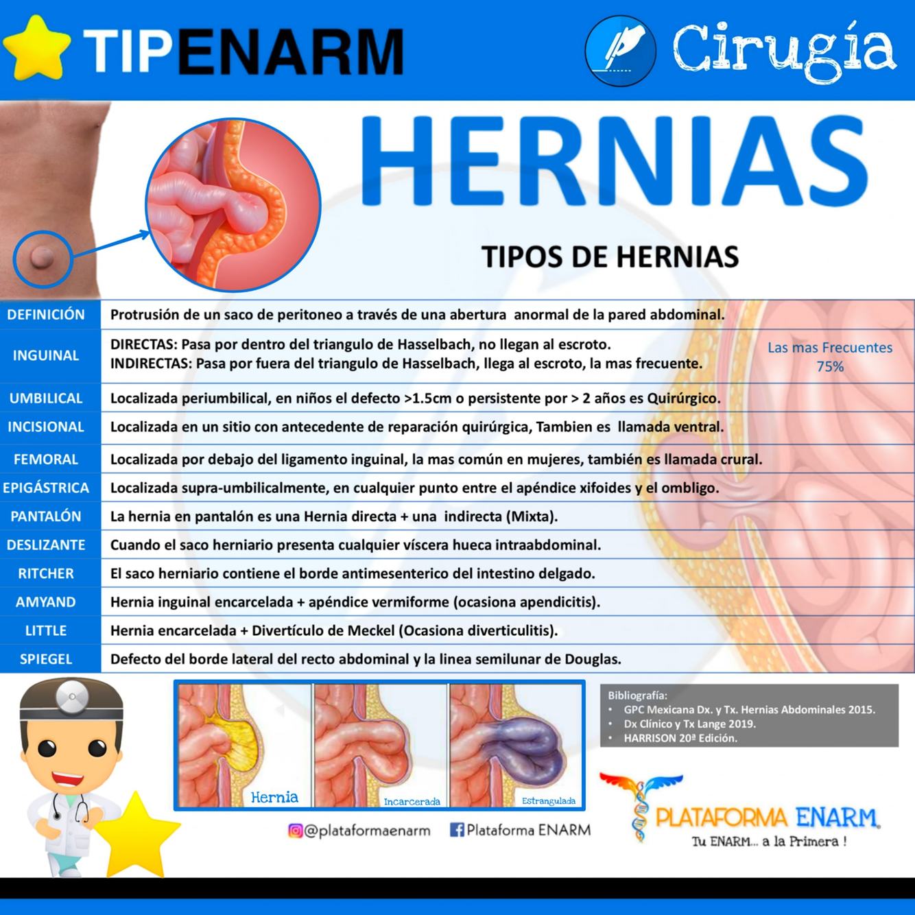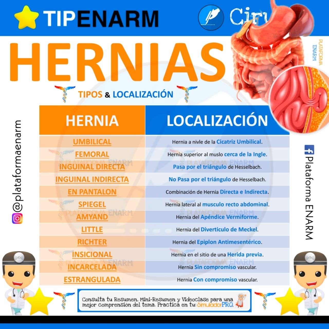 Tipos de hernias y su localización