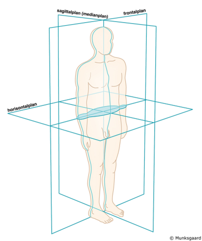 Horisontalplan, frontalplan og sagittalplan.