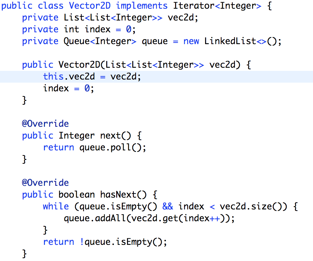 Implement an iterator to flatten a 2d vector.